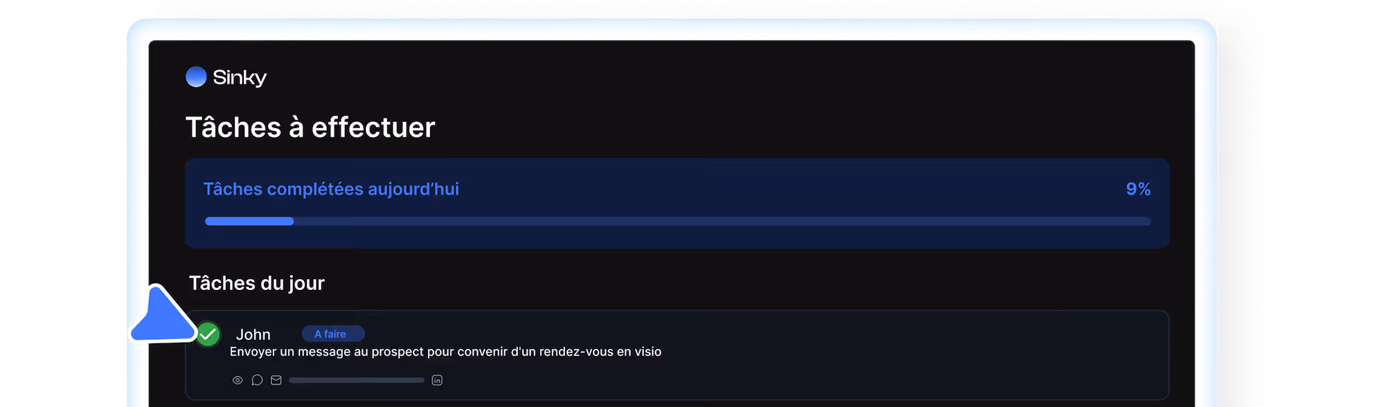 Sinky permet de générer plus de chiffre d’affaires en moins de temps.Comment ? En supprimant toutes les tâches à faible valeur ajoutée : organiser son pipeline, penser aux relances,rédiger des messages, suivre ses chiffres...