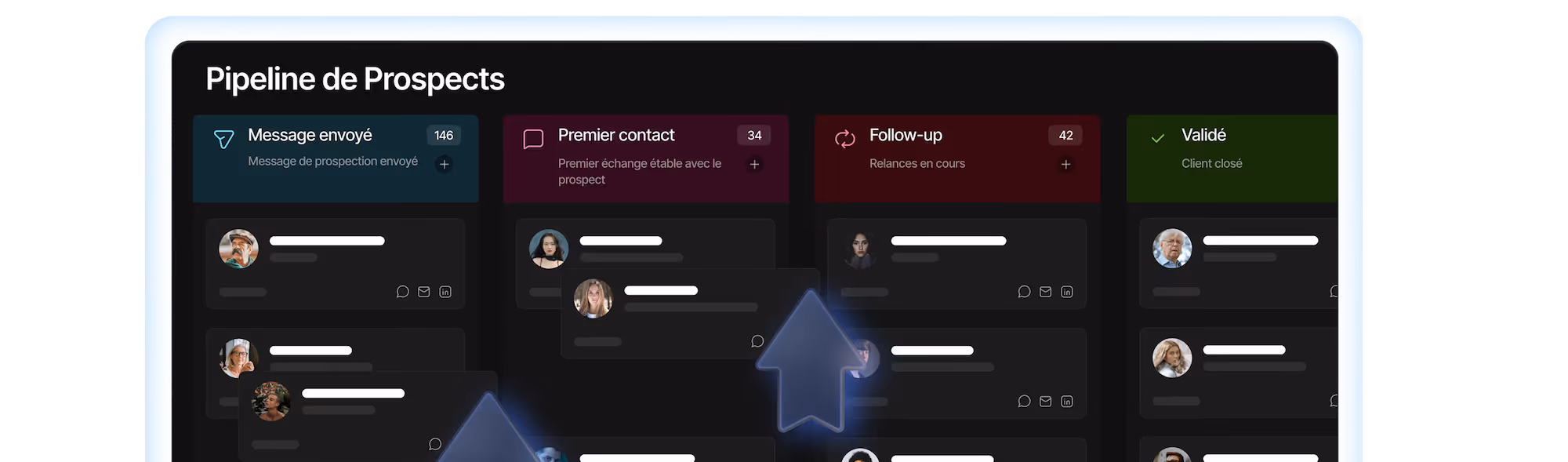 Lancez vos séquences linkedin + email + whatsapp avec des messages vraiment personnalisés, et pilotez tout depuis une seule interface.