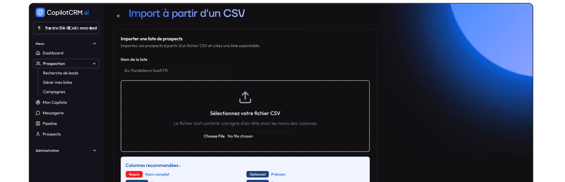 Injectez vos propres bases de contacts via CSV et normalisez automatiquement les données.
