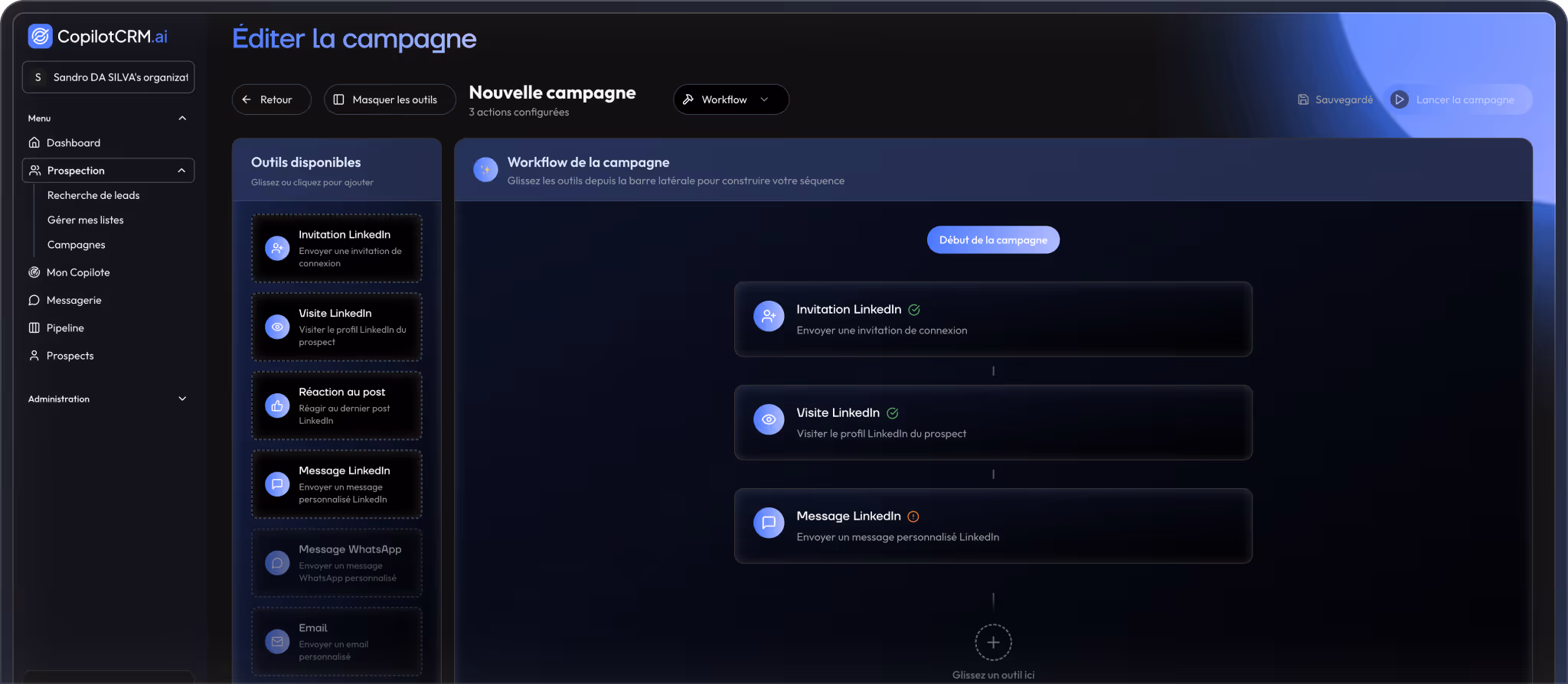 - Des séquences mix email + LinkedIn grâce à la messagerie LinkedIn